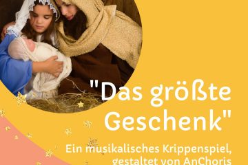 Herzliche Einladung zum Krippenspiel „Das größte Geschenk“ des Kinder – und Jugendchores AnChoris unter der Leitung von Jonas Wrba. Das Krippenspiel lädt die Besucherinnen und Besucher des Seniorennachmittags dazu ein, anhand der nicht alltäglichen Begegnung zwischen einem iranischen Mädchen und einem Obdachlosen zu erfahren, warum Christen das Weihnachtsfest feiern.