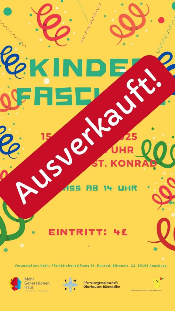 Die Tickets werden nach zeitlichem Eingang verteilt und müssen am Dienstag, 3. Februar, 10 – 12 Uhr oder am Donnerstag 5. Februar, 16-18 Uhr abgeholt und bezahlt werden. Jeweils im Pfarrhaus Sankt Konrad.