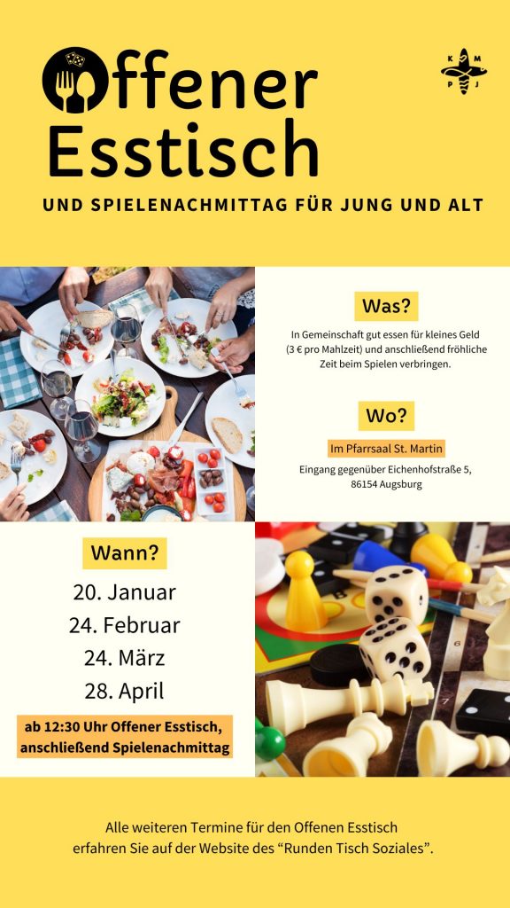 Zunächst ein warmes Mittagessen in guter Gemeinschaft für kleines Geld (3 €), dann gut gestärkt bei gemeinsamen Spielen noch Zeit verbringen.