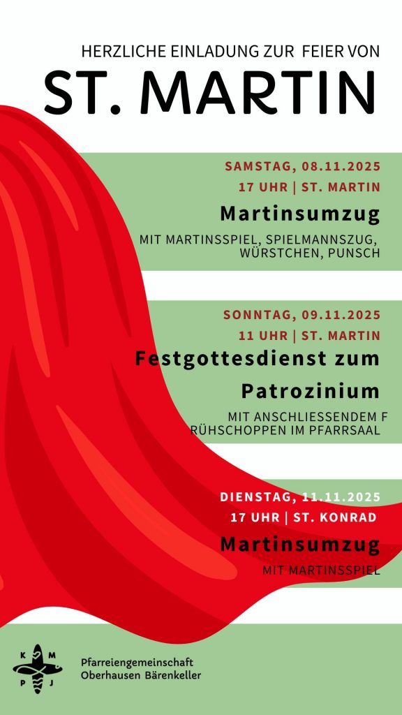 - Samstag, 8.11., 17 Uhr: Martinsfeier mit Martinsspiel, Umzug und anschließendem Verkauf von Punsch und Würstchen in und um die Kirche St. Martin, Oberhausen